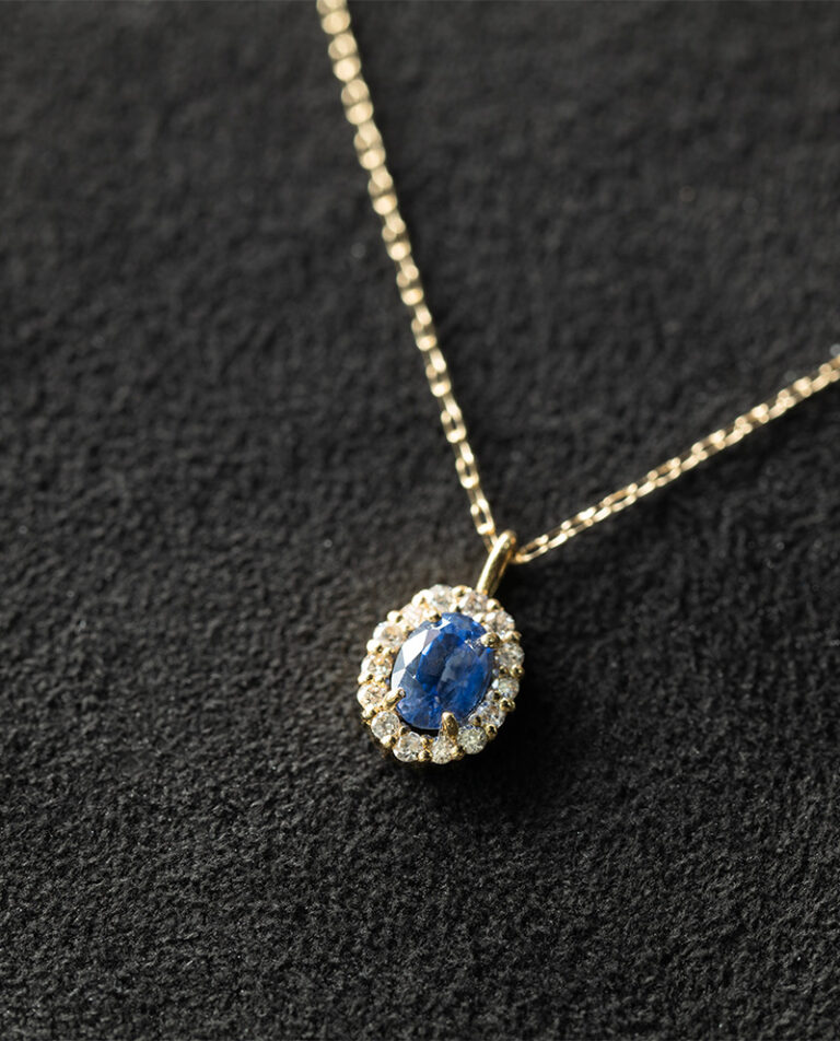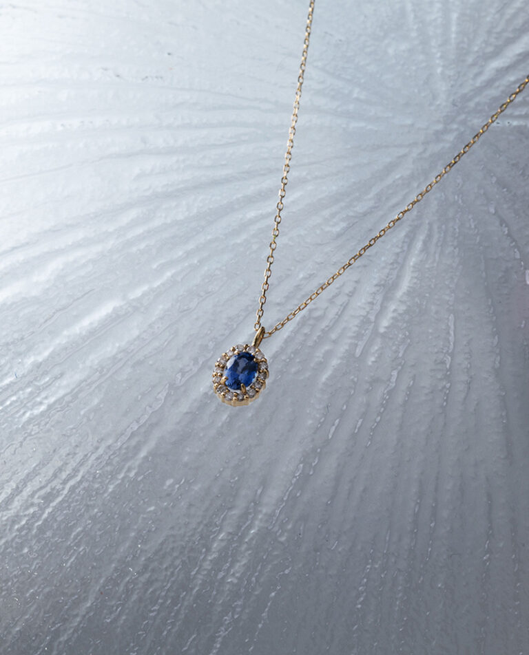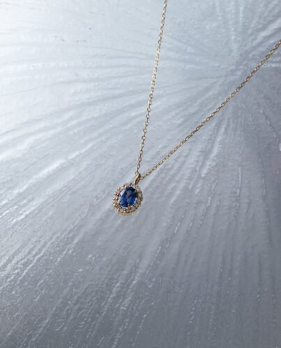 K18 天然藍寶石環鑽項鍊(附鑑定證書)