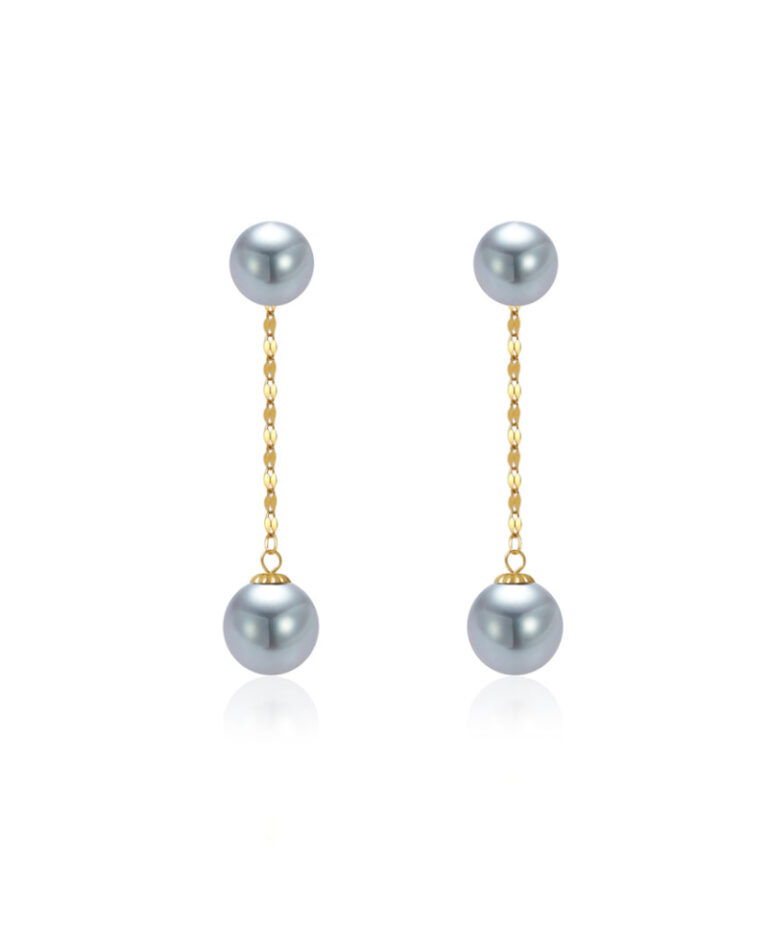 K18 銀暮天然銀灰Akoya珍珠耳環