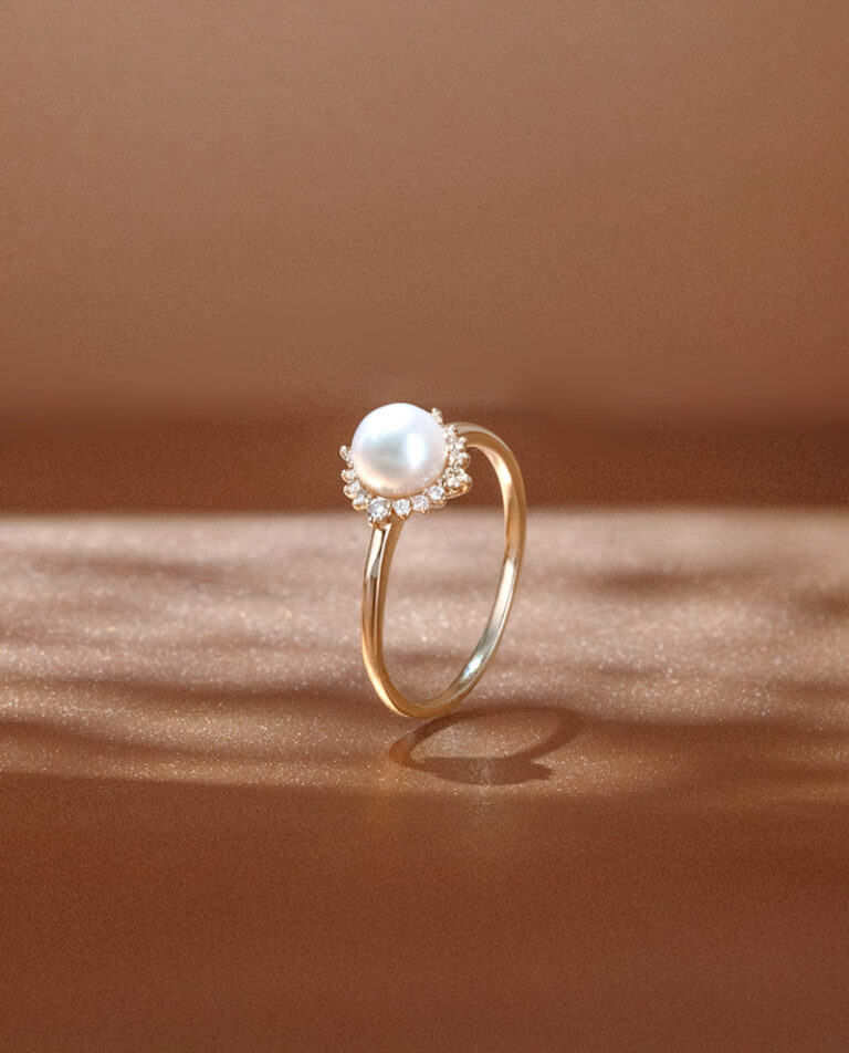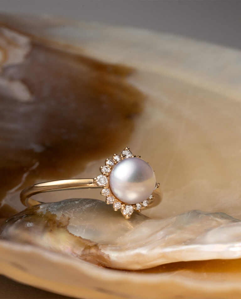 K18 蕭邦大華爾滋Akoya珍珠戒指 0.2ct鑽石