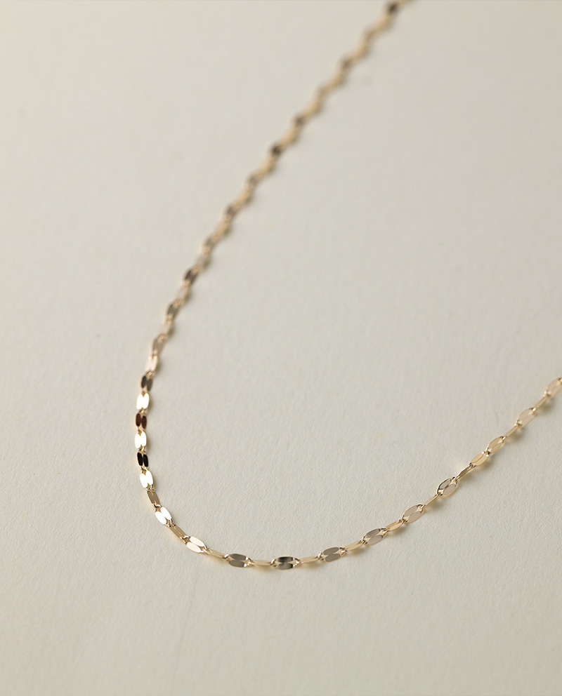 以「雪落時的細碎反光」為靈感,將光澤拆解為一片片極小的金屬切面 / 選用K10黃金,色澤溫潤、重量輕盈,適合長時間配戴 每一節鍊片在微小角度間自然翻轉,靜止時低調,移動時閃爍,是一條越看越耐、越戴越融入日常的項鍊 / 可單獨配戴,呈現乾淨極簡的線條;亦可作為疊戴基底,為整體造型增加細緻光澤 日本製