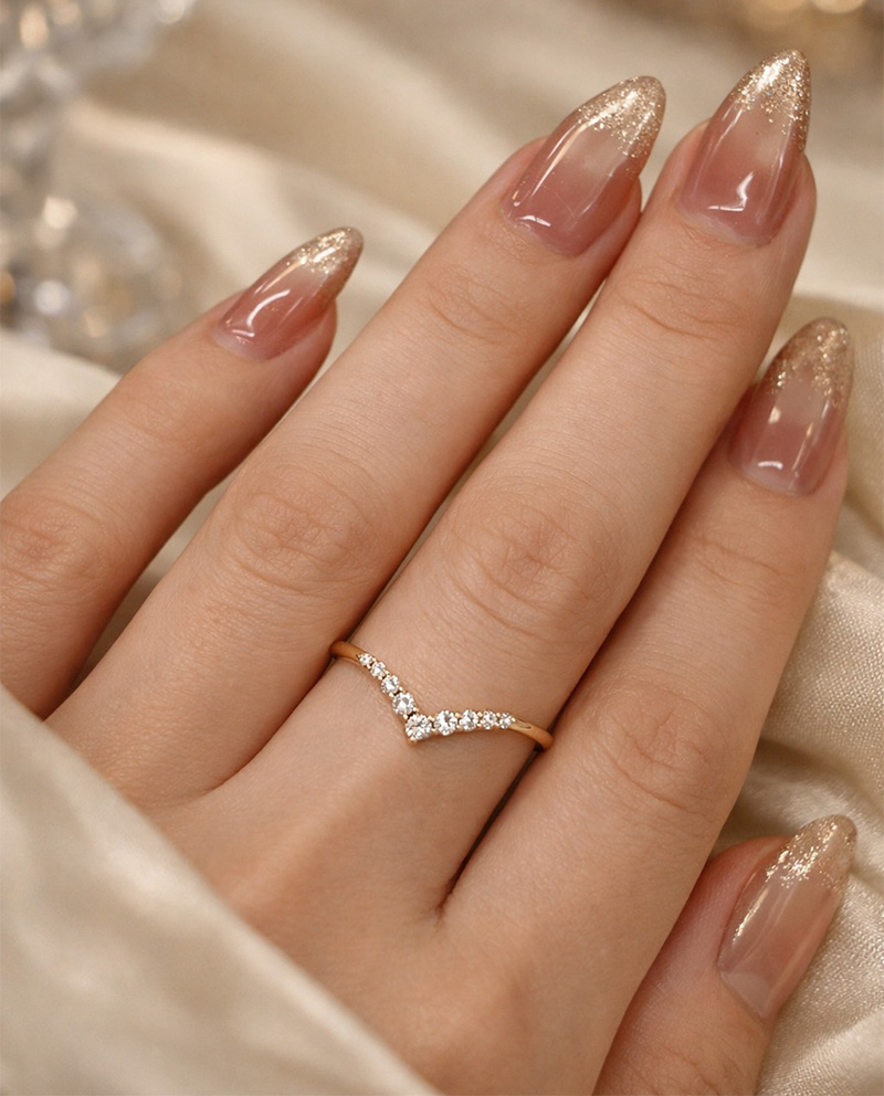 戒圈正面呈現柔和的「V型弧度」,宛如海鷗展翅,寓意自由、優雅與守護。這種曲線設計能讓手指更顯修長 / 多顆小鑽排列鑲嵌,總重約0.10ct,光線下能展現綿延不斷的閃耀,低調中帶著奢華 / 「海鷗」寓意自由的心、守護的愛與無拘無束的人生態度,除了美感,也承載寓意,特別適合送禮或自用 / 鑽石共10分 日本製