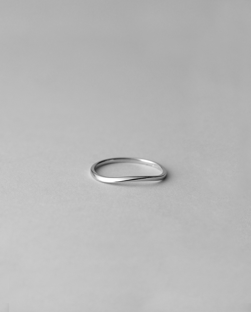 整體造型並非傳統正圓,而是在戒圈正面形成一條微妙的「流動曲線」 / 整體表面為高拋光,但因為有流動轉折線,光線在戒圈上會產生自然的明暗過渡,利用金屬本身的曲面結構完成光影變化 / 圓潤收邊與順滑表面處理,無突起、不勾衣,適合長時間配戴 日本製