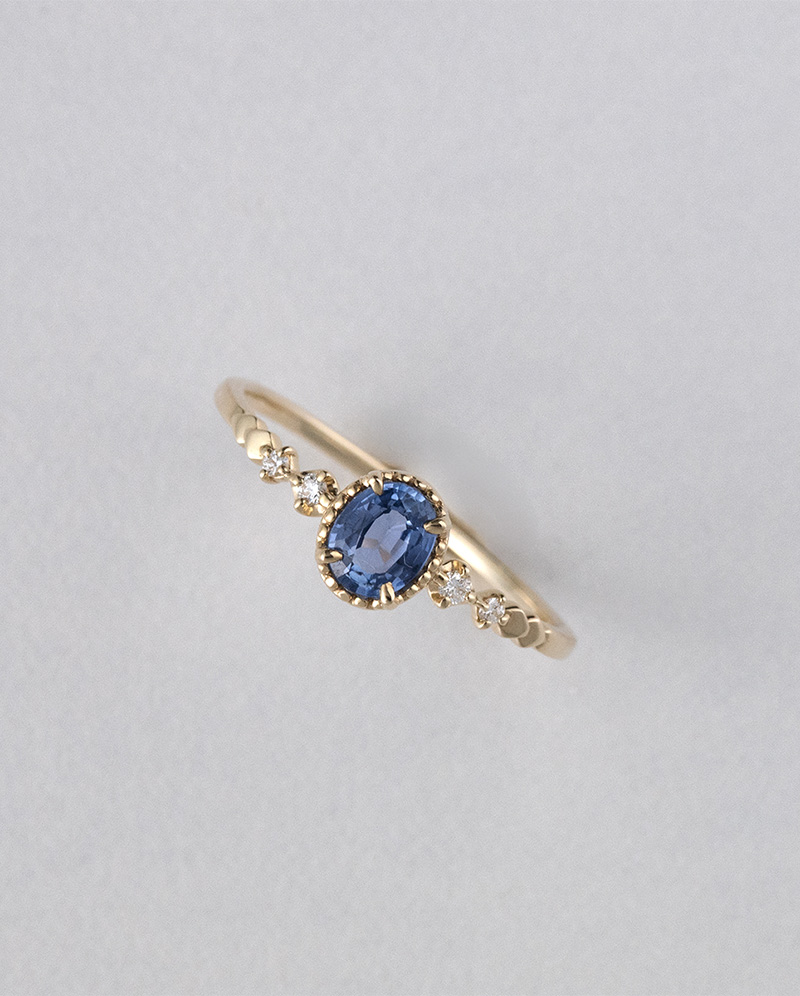 以世界最深湖泊 - 貝加爾湖的澄澈湖水為靈感,中央藍寶石呈現清透的湖水藍,如同陽光灑落在冰湖表面的光影 / 細緻的鑽石點綴如湖面微波,搭配柔和的K10金暖色調,讓整體既有優雅氣質,也保留日常配戴的輕盈感 / 藍寶石:0.43ct 鑽石共:0.03ct 日本製