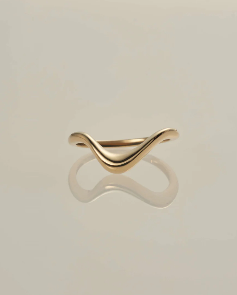 「雲弧」代表天空與海面之間的過渡線,象徵自然界中柔和的變化與光的流動 設計師將這種「短暫卻永恆」的瞬間,以金屬線條凝結成珠寶 / 戒身寬約 1.4mm × 厚約 1.2mm 日本製